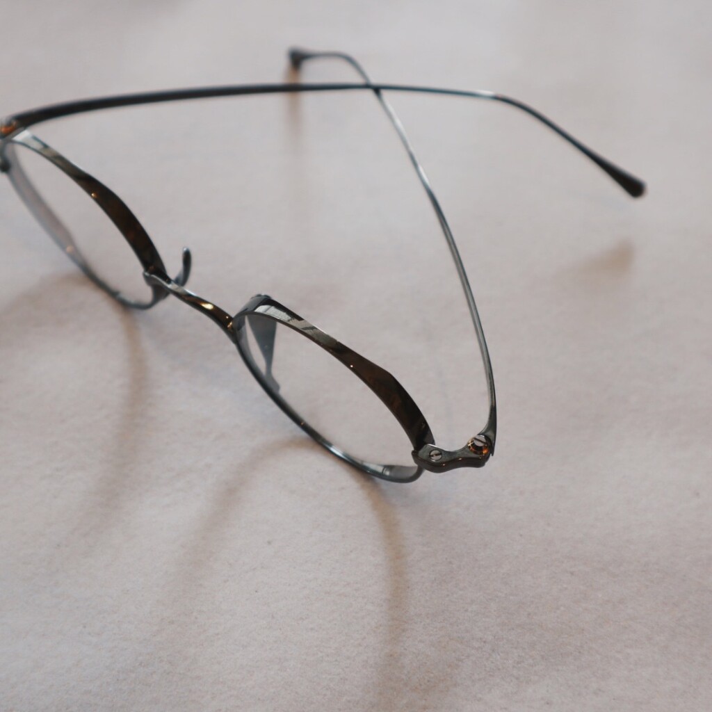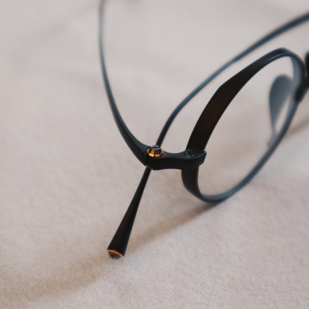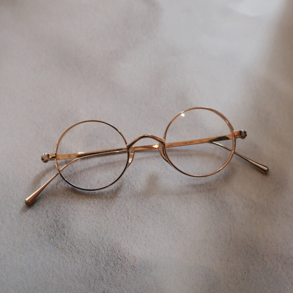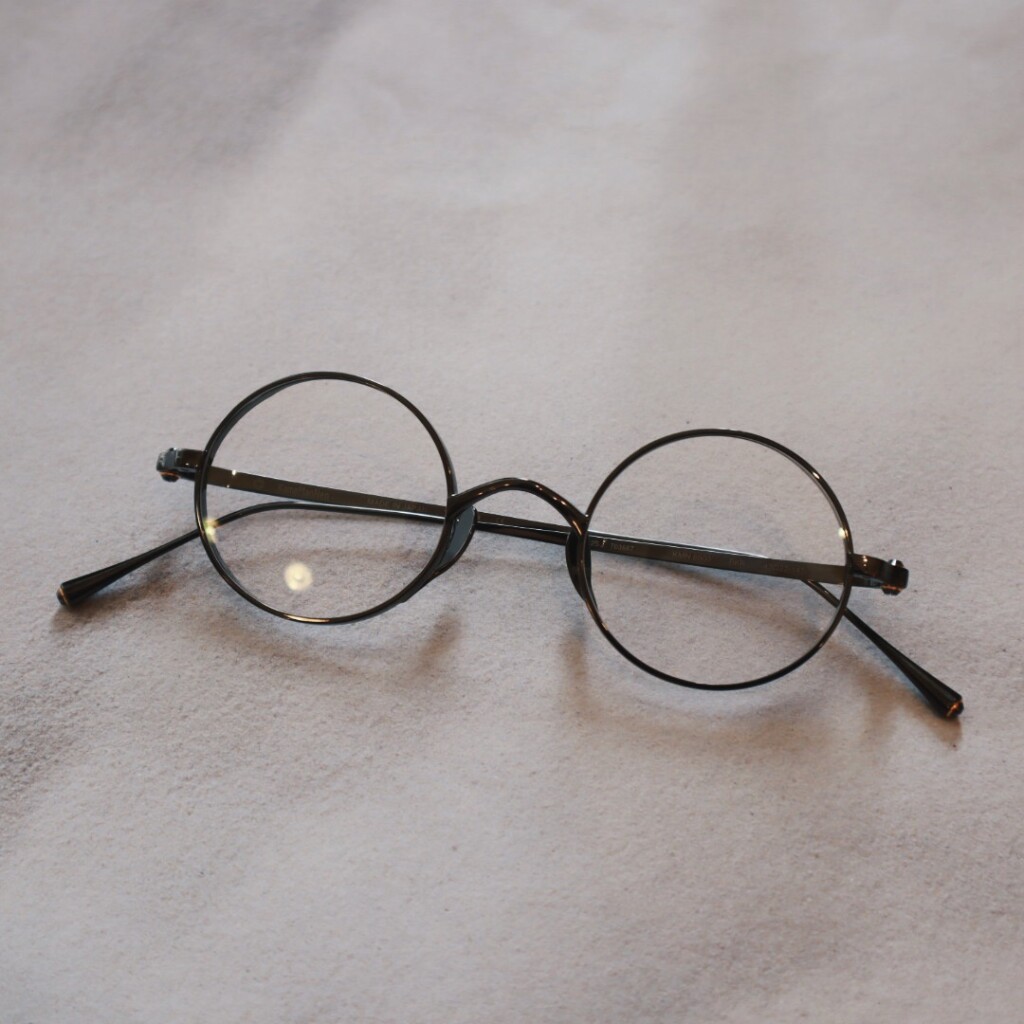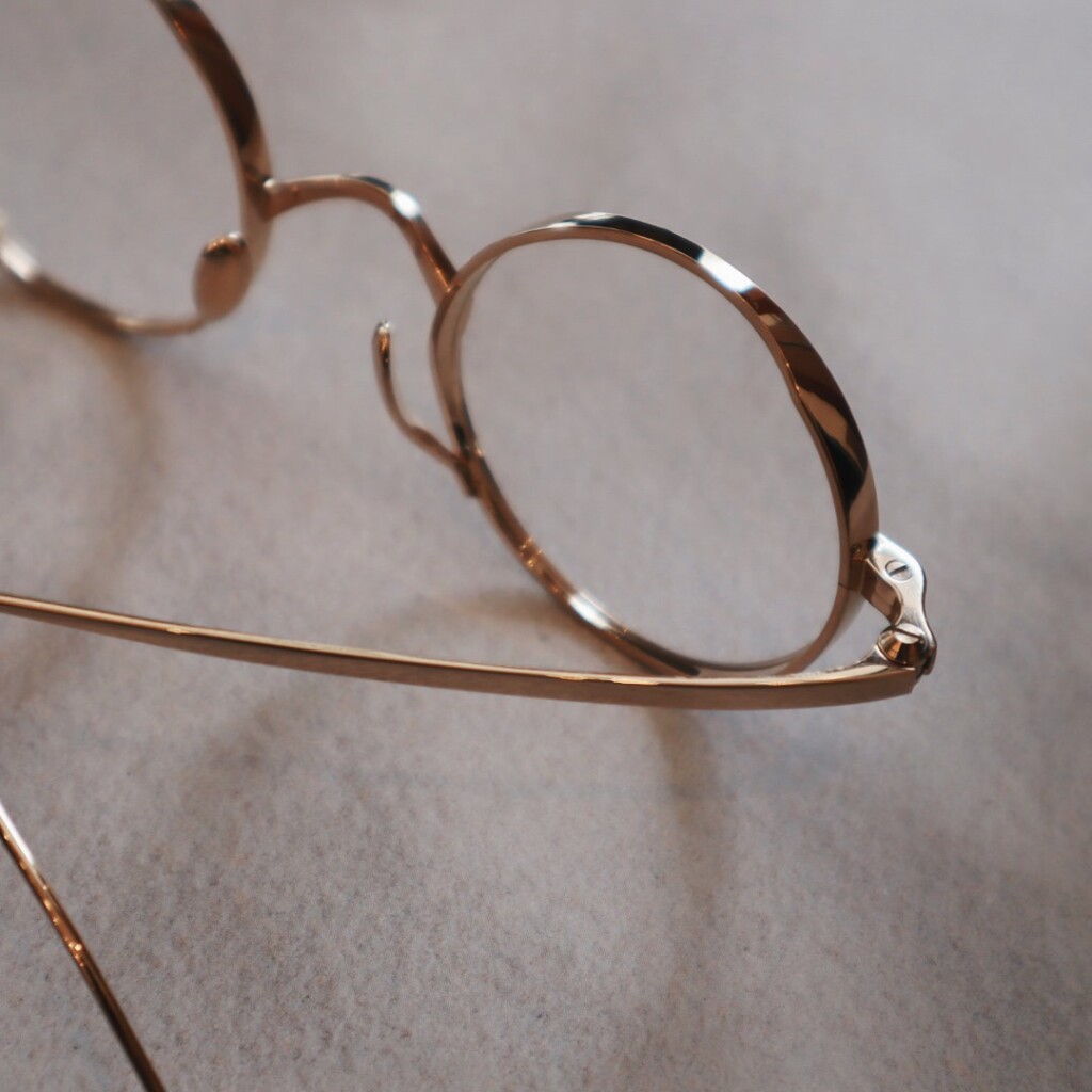 「KMN-99」と同様の小ぶりなラウンド型のフロントリムに、今回から新たに採用された特殊なネジで上下から挟み込むように頑強にねじ止めされています。フレームカラーによってはよりネジが際立ち、横から見たときも美しいです。